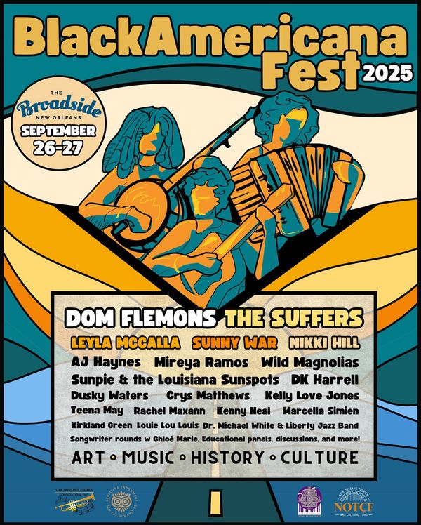 BlackAmericana Fest is a two day festival that honors and celebrates the musical heritage, legacy, and contributions of Black artists in the Americana and folk genres in New Orleans and the Mississippi River Delta region