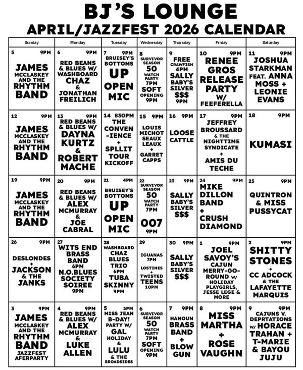 Saturday, April 25⋅ 9:00 – 11:00pm At B J's Bywarer Lounge